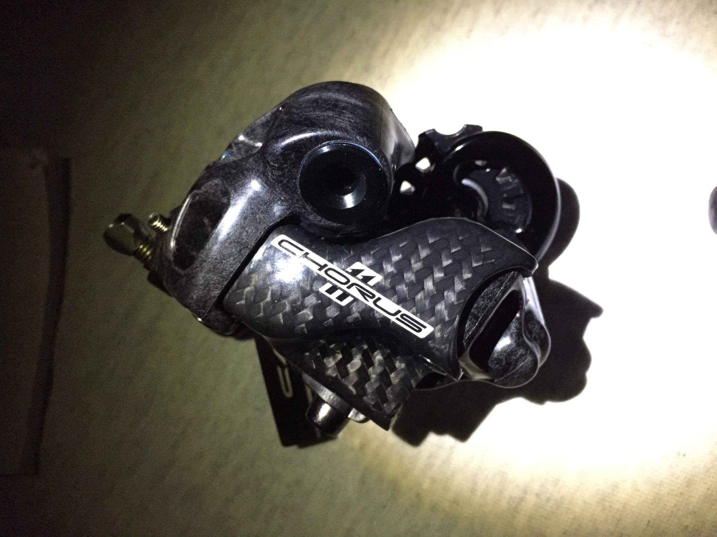 The Campag chain for the 11-speed cassette is, necessarily, more narrow to fit between the splines of the more-compact layers of cogs. The chain, too, is designed in complement to the ramps and pinions of the gears to facilitate the ramping up onto and slipping down into adjacent, even consecutively adjacent, gears.