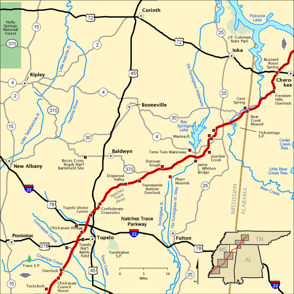 There is no chance we’ll get lost. A distinguishing feature of the Natchez Trace Parkway is its limited access and no-turn progress up to Tupelo. The way in 1797 was much less certain. There are also bridges now, a decided advantage.